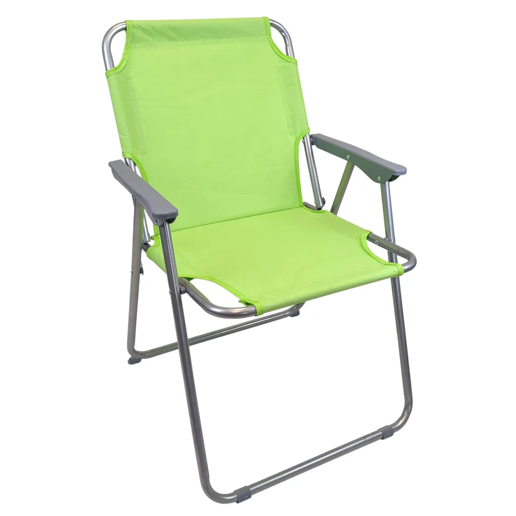 Dieser Campingstuhl lässt sich im Handumdrehen auf- und zuklappen und besitzt ein geringes Eigengewicht. Die Sitz- und Rückenfläche besteht auseinem strapazierfähigen und pflegeleichten Polyestergewebe in der Farbe Grün.Das Gestell ist aus pulverbeschichteten Metall hergestellt. Nach Nutzung lässt sich der Stuhl schnell und mühelos zusammenfalten und anschließend platzsparend lagern. Dieser Faltstuhl ist äußerst praktisch für Haus, Garten und Camping geeignet.