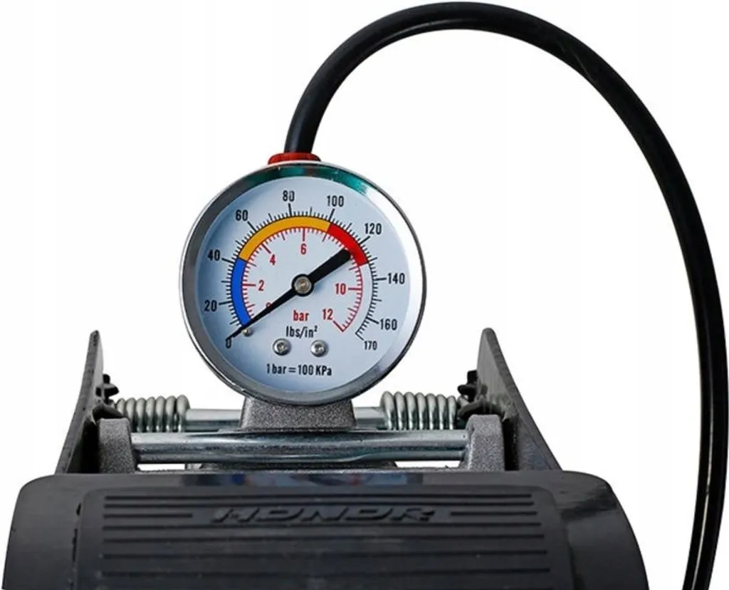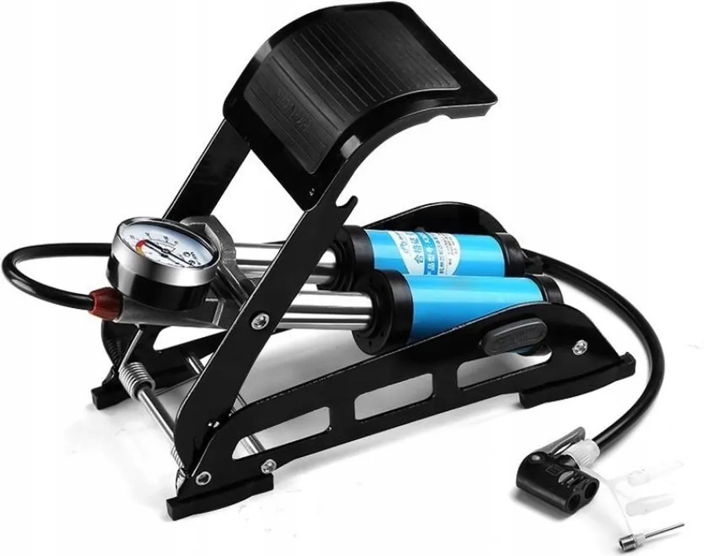 Suchen Sie nach der Fußluftpumpe zum Aufpumpen der Reife, die einfach zu bedienen und wirksam ist? Mögen Sie sehr die Fahrradfahrten mit Ihrer Familie und vielleicht fahren Sie sehr gern unter das Zelt? Unsere Zweihubfußluftpumpe wird Ihnen helfen, auf schnelle Weise die Luft im Fahrradreifen nachzufüllen und auch einfach die Matratze oder das Touristenbett aufzupumpen. Das Gerät mit integriertem Manometer und der Satz der Adapter zu den Ventilen werden bereiten, dass Sie wirksam erforderliche Luft in den Reifen, das Luftspielzeug oder den Ponton hineinpressen werden.