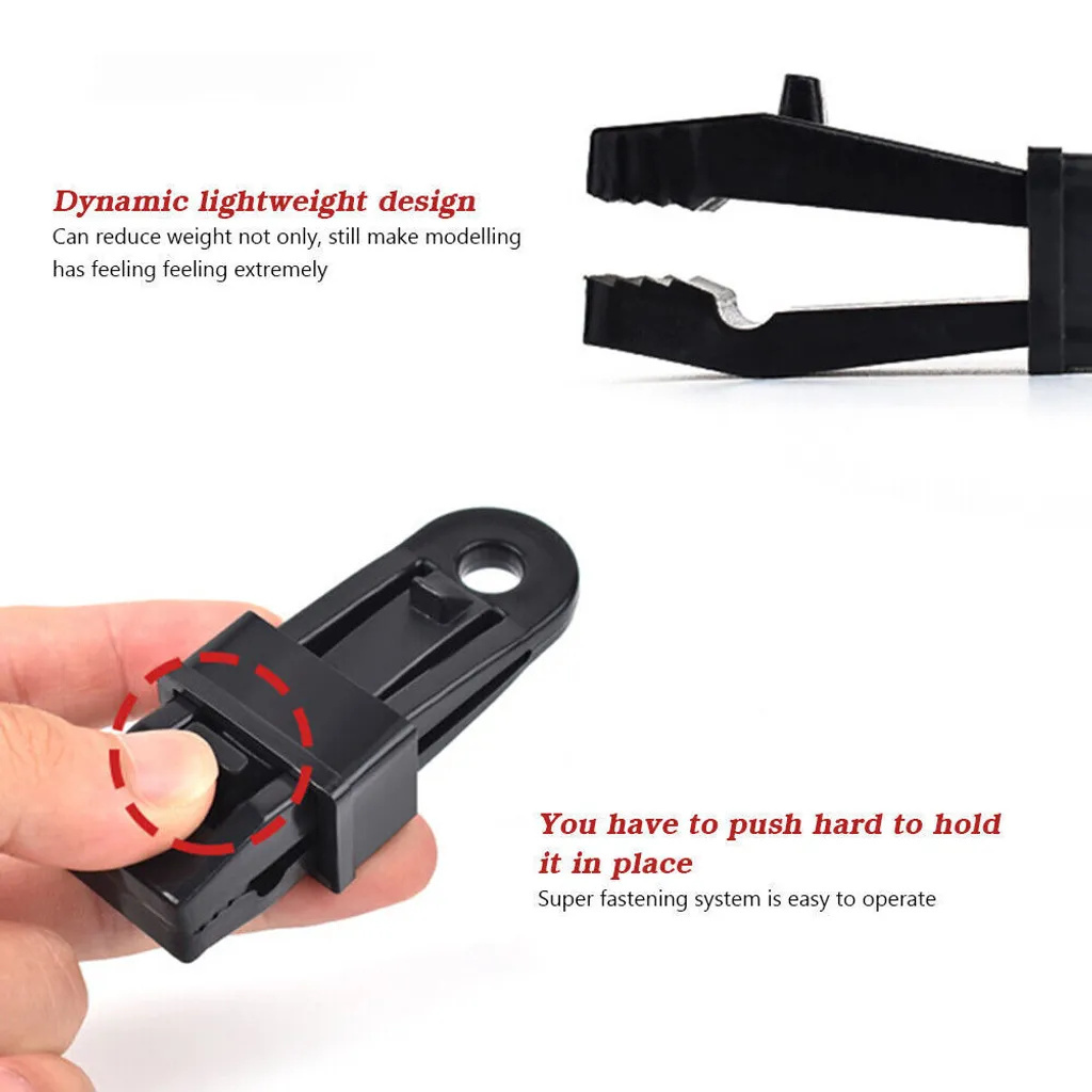 – Diese Markisen-Klammern sind geeignet für große Zugkraft und lösen sich nicht einfach selbst, nachdem sie am Zelt angebracht wurden. Sie verursachen keine großen Schäden am Stoff.