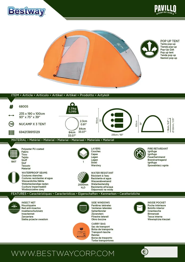 Bestway Pop-Up Zelt Nucamp X3 Tent 235x190x100 cm