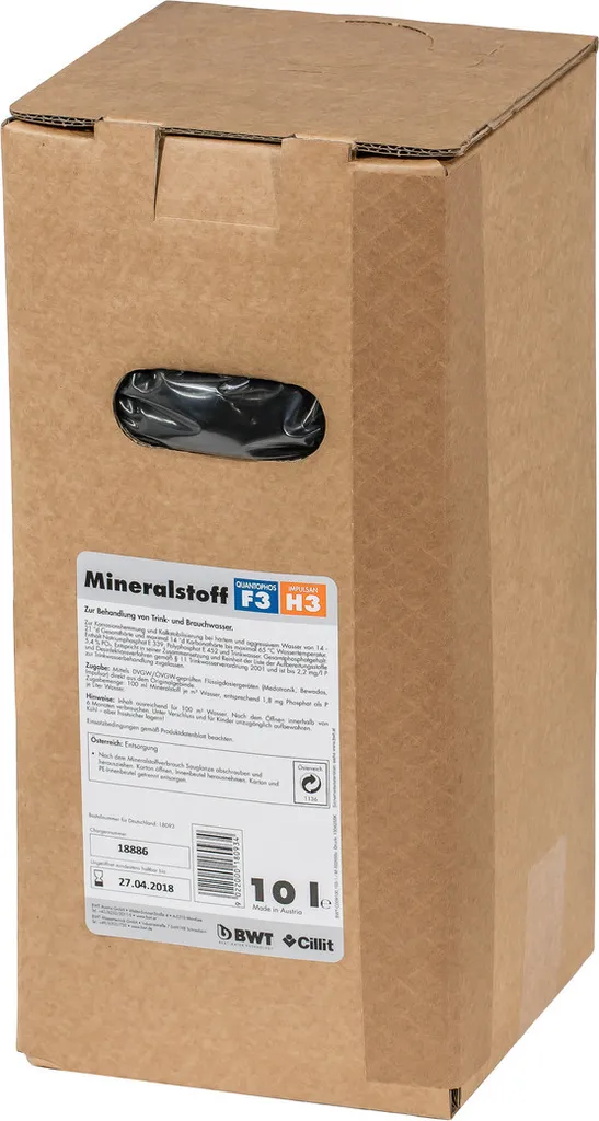Quantophos F3/H3 ist zur Behandlung von Trink- und Brauchwasser, Härtebereich 14-21 °d Gesamthärte bzw. Summe Erdalkalien 2,5 – 3,8 mol/m³ und maximal 14 °d Karbonathärte bis max. 65 °C Wassertemperatur bestimmt. Das Produkt minimiert die Korrosivität des Wassers auf Installationssysteme aus verzinktem Stahl. Es bewirkt weiterhin eine Härtestabilisierung. Die korrekte Wasserbehandlung mit Quantophos F3/H3 minimiert die Verkalkungsneigung des Wassers sowie dessen Korrosivität. Jedoch sind die Betriebs- und Installationsbedingungen sowie die Werkstoffbeschaffenheit weitere wichtige Einflussgrößen, die den Verfahrenserfolg beeinflussen können. Die Wasserbehandlungsmaßnahmen müssen auf die zu erwartende oder aufgetretene Korrosionsart und die Installations- und Betriebsbedingungen abgestimmt werden. Bitte beachten Sie, dass die 3 Liter-Gebinde nur für das Bewados E3 Modul und die 10- bzw. 20 Liter Kanister nur für das Bewados E20 Modul geeignet sind.