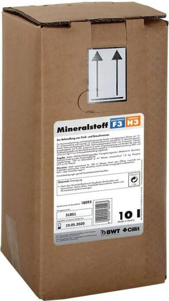 - Dosier-Wirkstoff (Mineralstoff-Kombination) zur Aufbereitung von Trink- und Brauchwasser mit Härte von 14-21 GdH