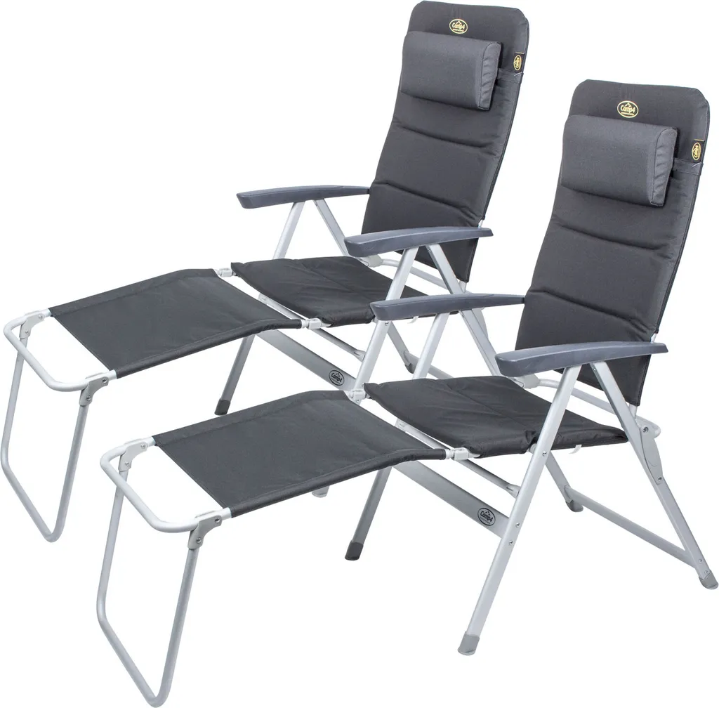 Lieferumfang: 2x Campingstuhl „Grenoble“, 2x Fußteil, 2x Nackenkissen