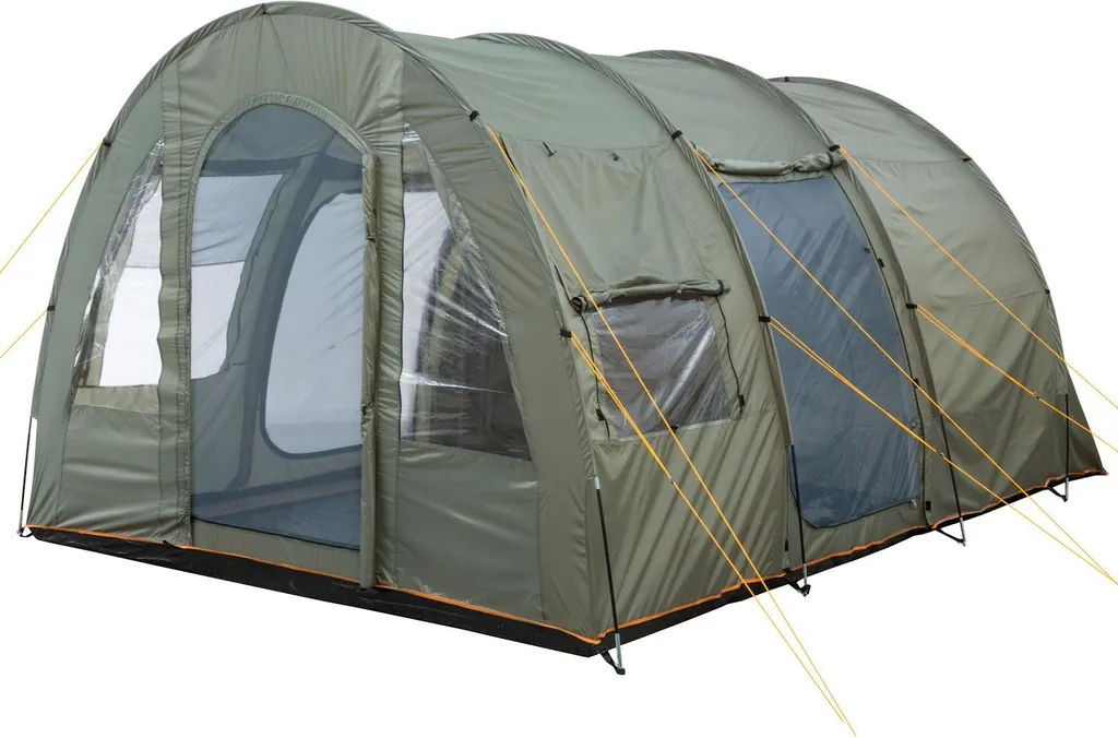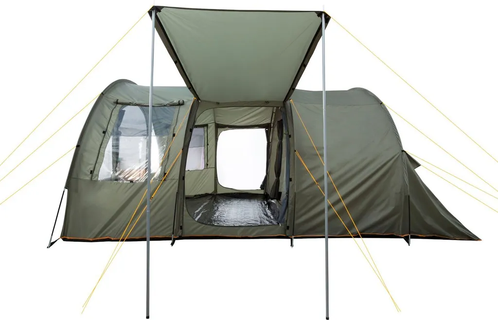 Das Tunnelzelt bietet mit seinen großen 475 x 305 x 205 cm genügend Platz für 4 Personen. Der Zeltstoff ist aus 190T Polyester und hat zusätzlich eine PolyurethanBeschichtung. Mit einer Wassersäule von 5000 mm schützt Sie der Zeltstoff ideal vor Regenschauern. Der, mit dem Außenzelt vernähte, Boden ist aus PE-Folie gefertigt. Mit einem Packmaß von 72 x 39 x 33 cm und einem Gewicht von ca. 19,3 kg ist das Zelt handlich zu transportieren. Das Zelt wird, in einer Tasche gepackt, geliefert. Desweiteren liegen dem Lieferumfang: Fiberglasgestänge, Aufstellstangen, Erdnägel und Abspannseile bei.