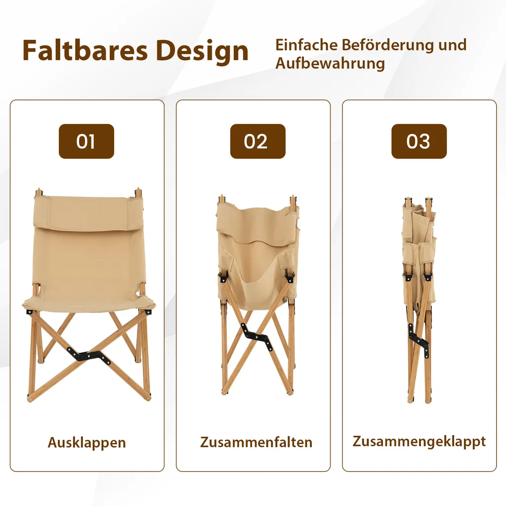 Der Hauptrahmen des Campingstuhls besteht aus hochwertigem Bambus, der natürlich, solide und abriebfest ist. Und er sorgt für hohe Stabilität und ermöglicht dem Stuhl eine Belastung von 150 kg. Außerdem ist das Segeltuch rissfest und farbecht, was ebenfalls für eine lange Lebensdauer sorgt.