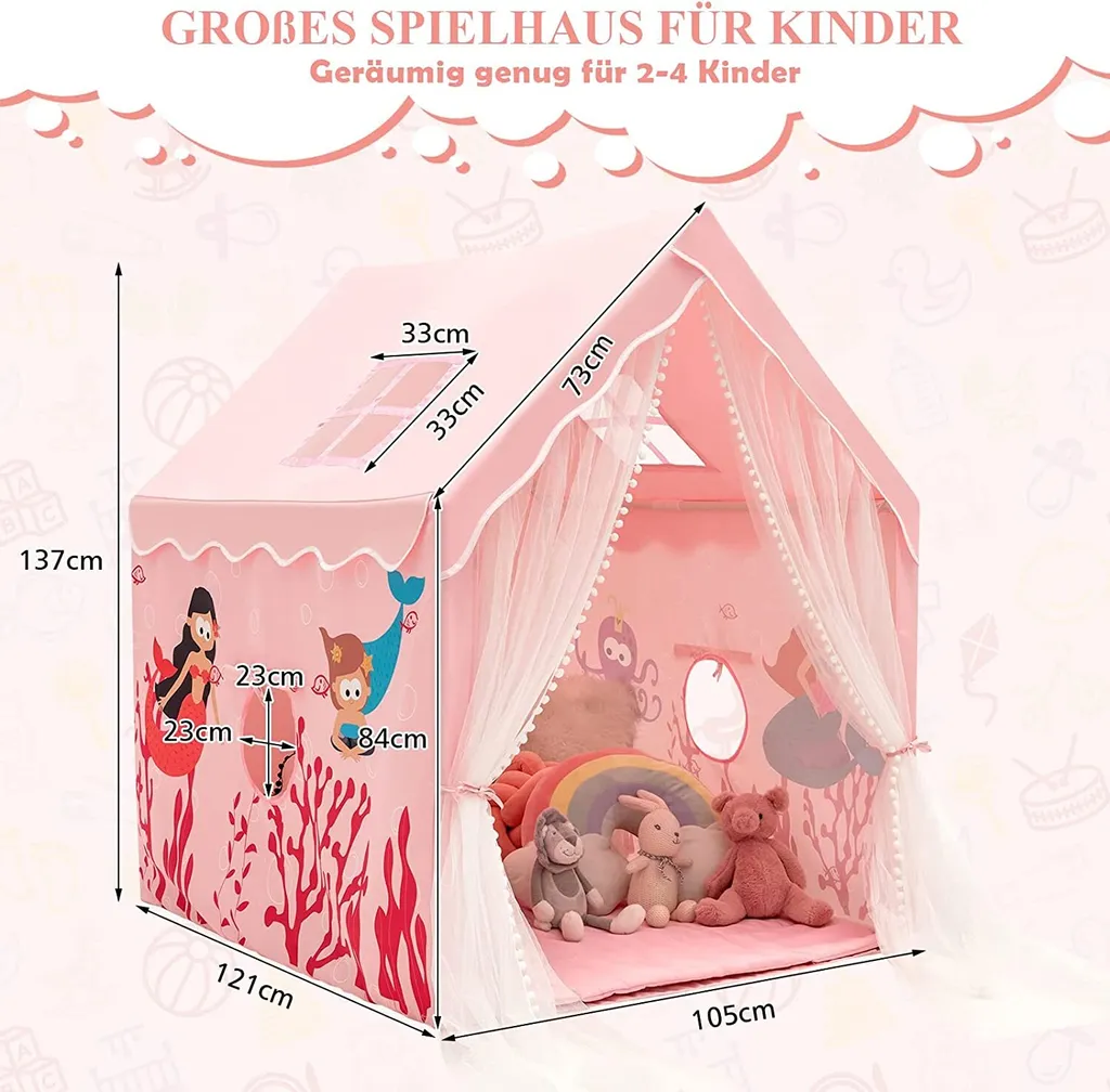 Unser vielseitiges Kinderspielzelt misst 121 cm (L) x 105 cm (B) x 137 cm (H) und ist geräumig genug, um 2-3 Kinder zum Spielen oder 1 Erwachsenen unterzubringen und Ihrem Kleinen einen privaten Ort zum Ausruhen oder Unterhalten zu bieten. Somit ist dieses Spielzelt die ideale Wahl für Eltern-Kind-Zeit, Spielzeit, Bücherlesen oder für ein Nickerchen.