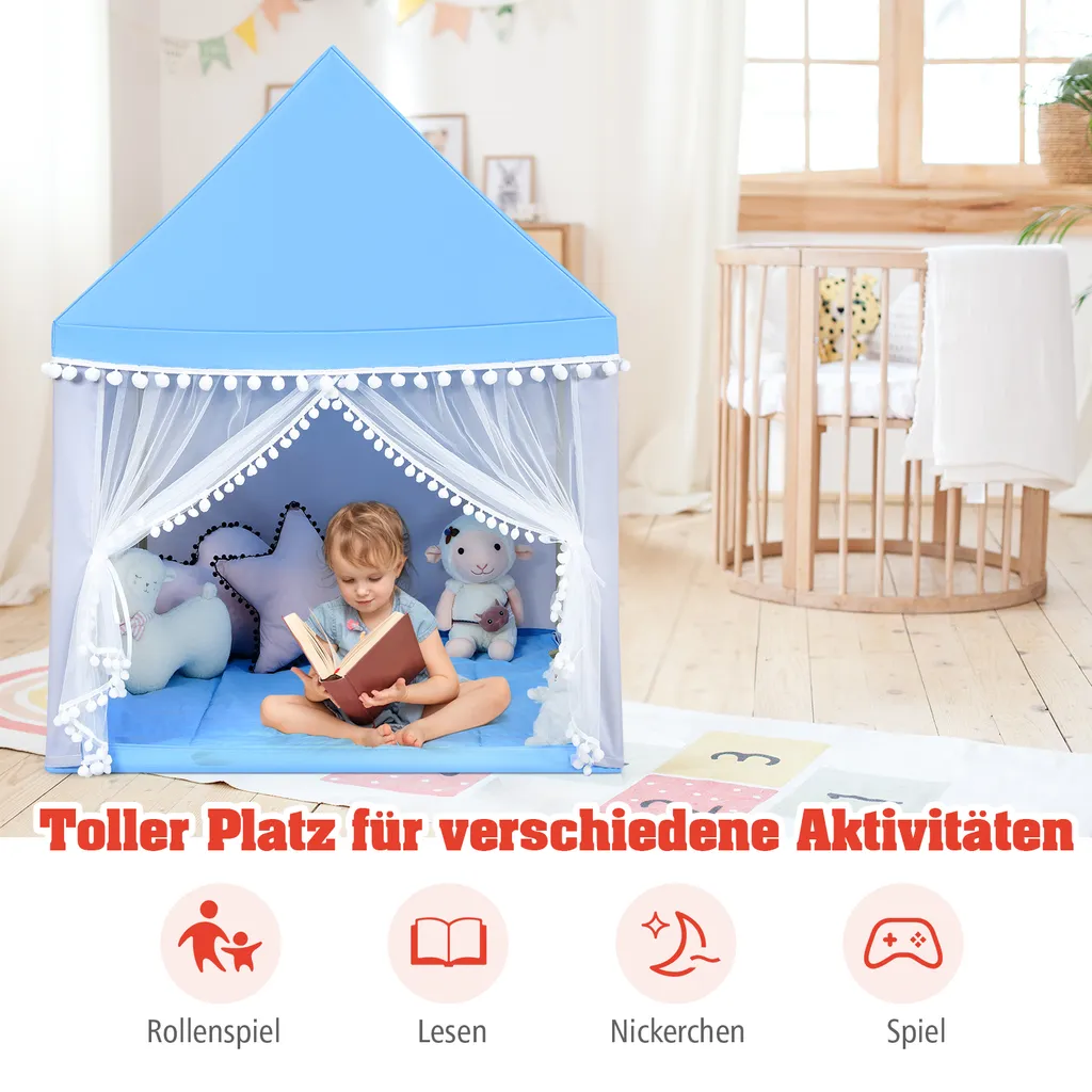 Genau wie ein echtes Haus ist dieses Spielhaus mit seinem Massivholzrahmen sehr stabil. Eine weiche und dicke Decke wird mitgeliefert, um ein superbequemes Sitzgefühl zu schaffen. Das ganze Haus ist mit ungiftigem und geruchlosem Oxford-Stoff bezogen, und Sie können sich darauf verlassen, dass Ihr Kind immer in einer sicheren Umgebung sein wird. Die bezaubernden Türen und Fenster dienen nicht nur der Dekoration, sondern auch der Luftzirkulation.