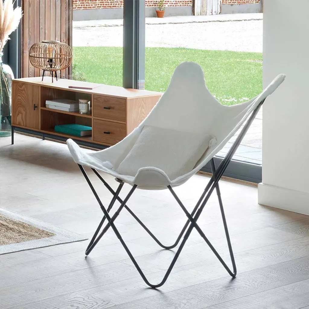 Der Risette Schmetterlingssessel von Eazy Living verleiht Ihrer Einrichtung einen weichen Touch. Der weiße Sessel ist nicht nur ein Designklassiker für verschiedene Interieurs, sondern dank der Pelzpolsterung auch schön weich. Der Schmetterlingsstuhl ist mit Polyester gepolstert und steht auf einem