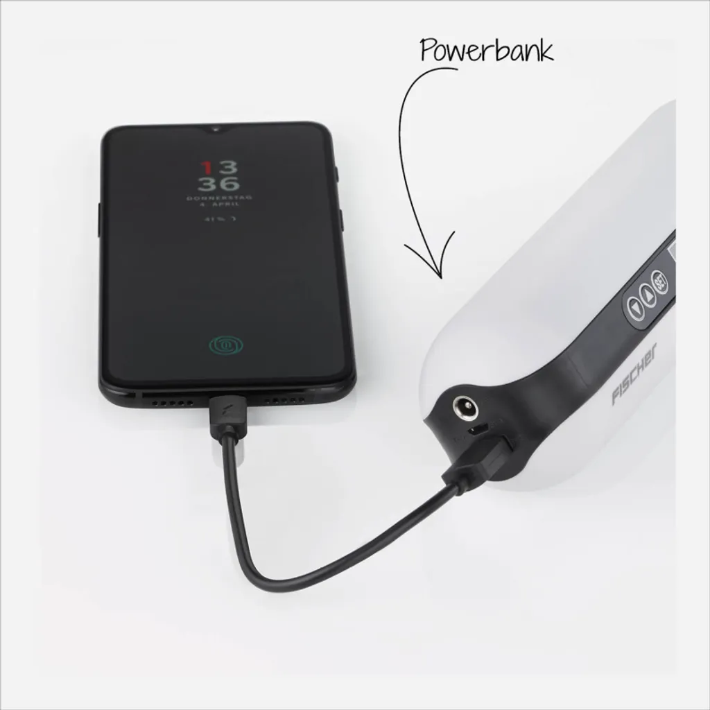 FISCHER Akku-Kompressor mit Powerbank und LED-Taschenlampe