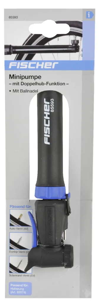 Eine Luftpumpe zählt im Fahrradbereich zur Grundausstattung, kann allerdings auch für Auto- und Motorradfahrer sinnvoll sein. Erhältlich sind grundsätzlich verschiedene Bauformen, wobei jede davon wie üblich Vor- und Nachteile hat und sich fast ausschließlich für einen bestimmten Einsatzzweck eignet. Die kompakte FISCHER-Mini-Pumpe pumpt bei Zug- und bei Druck. Durch den reversiblen Einsatz passt sie für alle gängigen Ventile. Die Minipumpe wird mit Ballnadel geliefert und ist dadurch auch für die Freizeit geeignet.