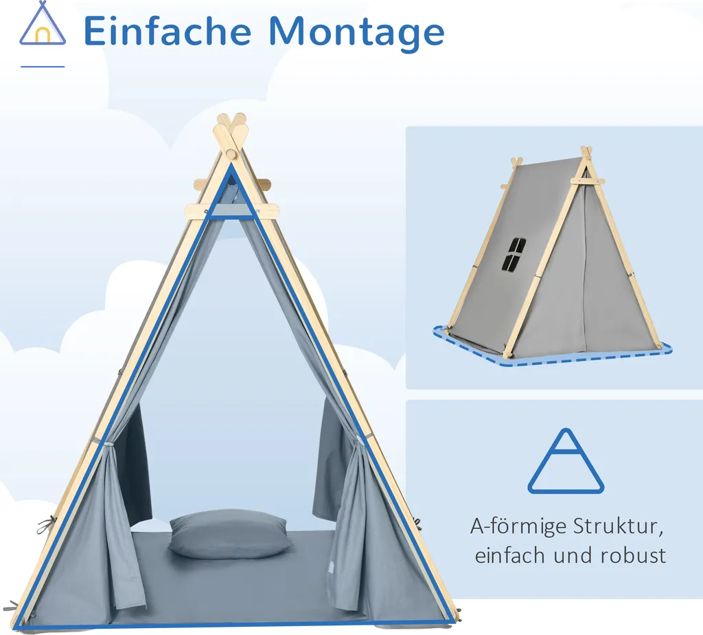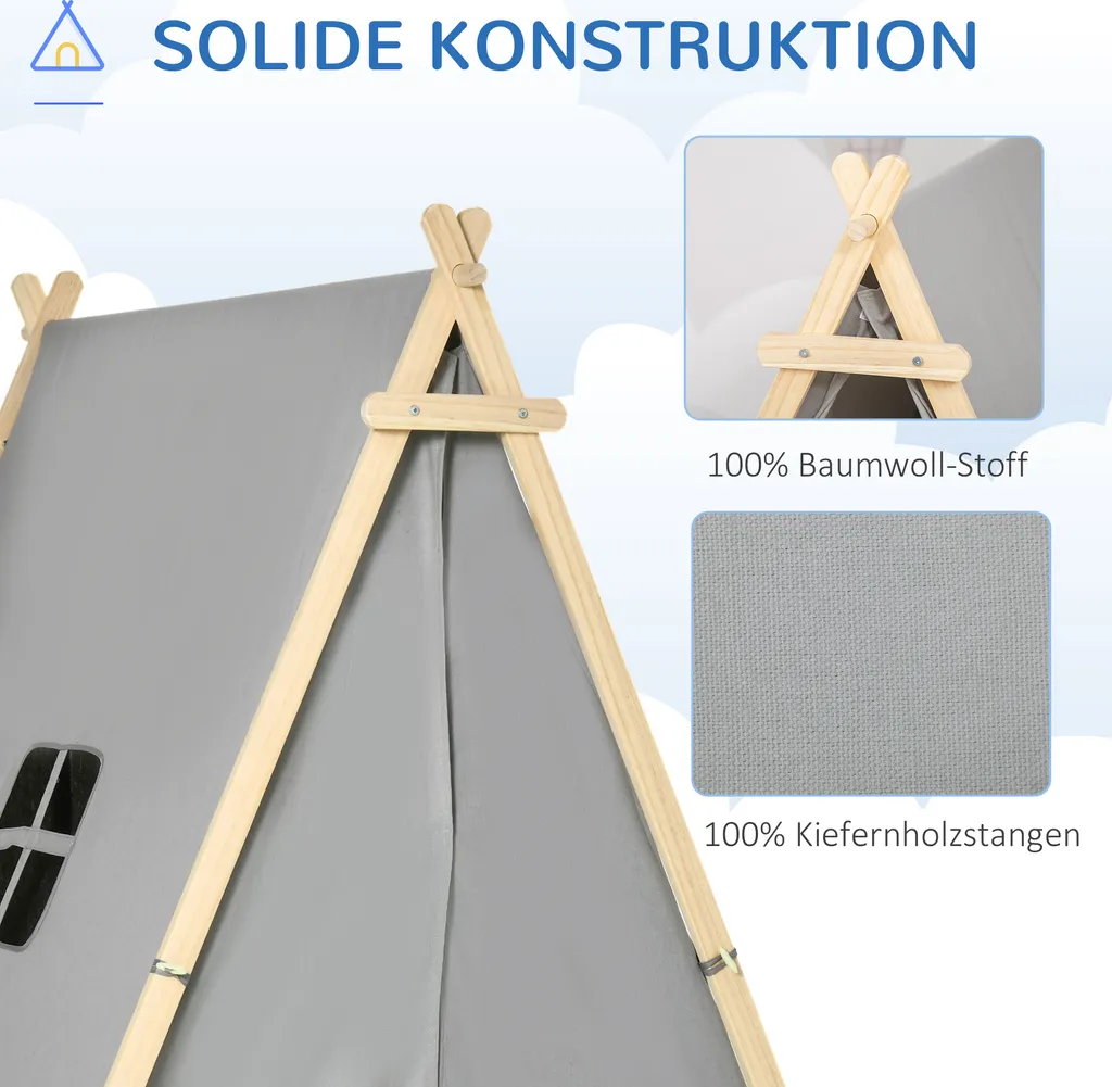 – Segeltuchstoff und Stangen aus Kierfernholz machen dieses Tipi-Zelt für Kinder sicher und robust