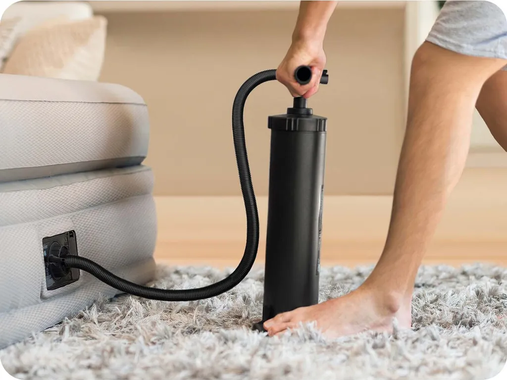 Mit dieser Handpumpe sind Luftbetten, Matratzen, Boote uvm. im Handumdrehen aufgepumpt.