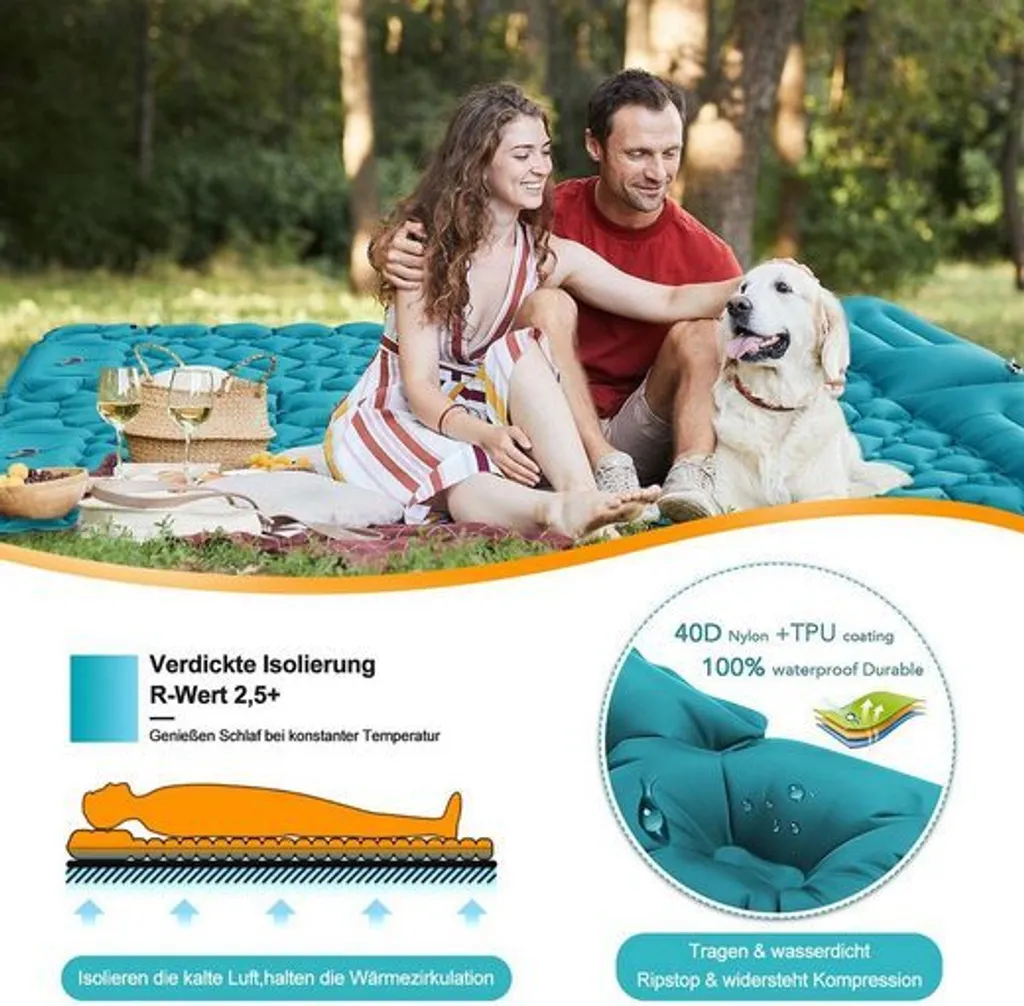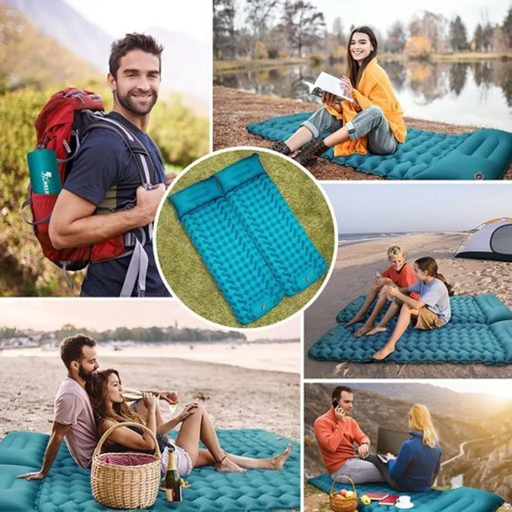 - Knöpfen an der Seite können zu einem Doppelbett machen: Mit den Knöpfen an der Seite können Sie einfach eine an einer anderen Schlafunterlage befestigen und es zu einem Doppelbett machen! Diese aufblasbare Isomatte ist eine zuverlässige Begleitung Schlafsäcke, Zelte, Hängematten Geeignet für Camping, Wandern, Rucksacktourismus, etc.