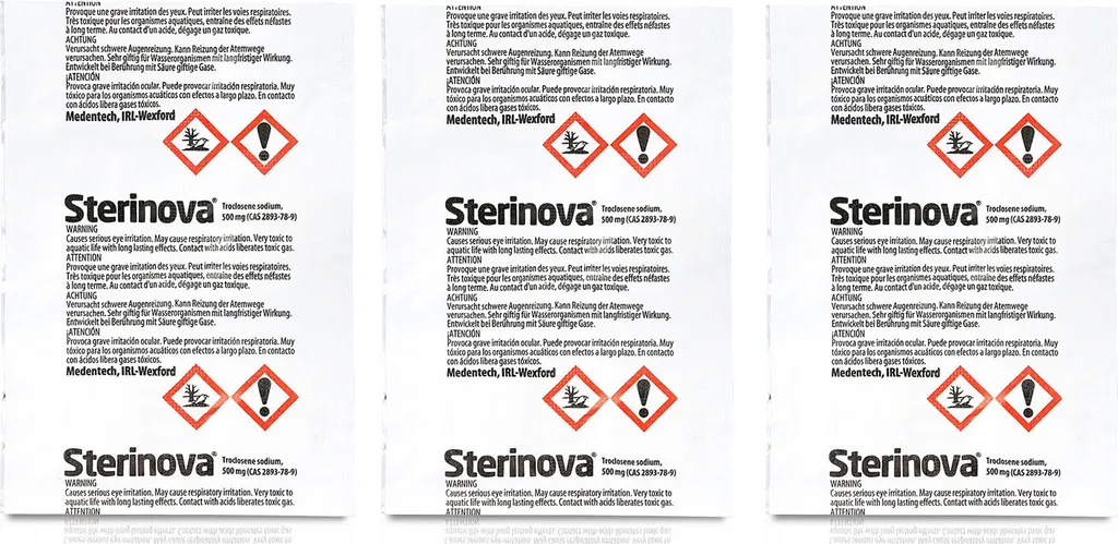 - Lieferumfang: 3 x 6 Sterinova Wasserreinigungstabletten zur Desinfektion. 500mg Troclosene Sodium Pro Tablette