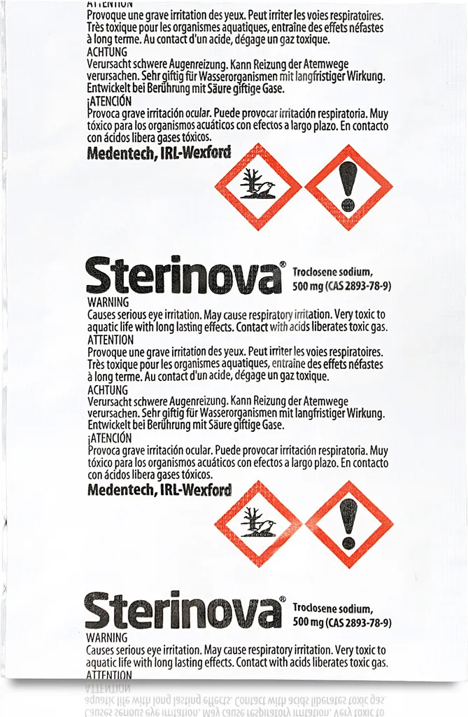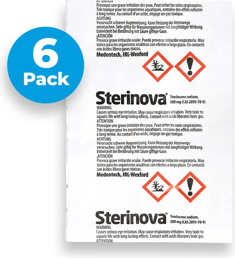 - Lieferumfang: 1 x 6 Sterinova Wasserreinigungstabletten zur Desinfektion. 500mg Troclosene Sodium Pro Tablette
