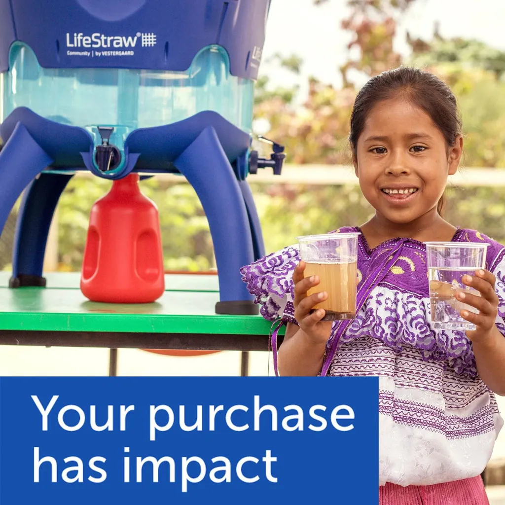 Das hochleistungsfähige Schwerkraft-Wasserfiltersystem LifeStraw Mission reinigt Wasser auf 0,02 Mikrometer. Der Wasserreiniger macht kontaminiertes Wasser trinkbar, indem 99,999 % der Viren, 99,999999 % der Bakterien, 99,999% der Parasiten und 99,999 % des Mikroplastik entfernt werden. Das LifeStraw Mission ist ideal für Gruppencamping, Outdoor-Expeditionen, Abenteuerreisen und den Einsatz in Notfällen und kann bis zu 18.000 Liter sauberes Wasser liefern. Das System lässt sich leicht in Seen, Flüssen und Bächen füllen und enthält eine kompakte Rolltasche, die in 5- und 12-Liter-Größen erhältlich ist. Ihr Kauf hat Einfluss. Für jedes gekaufte LifeStraw-Produkt erhält ein bedürftiges Schulkind ein ganzes Schuljahr lang sauberes Trinkwasser.