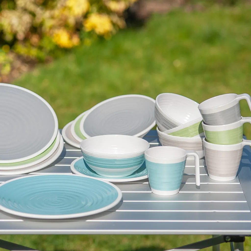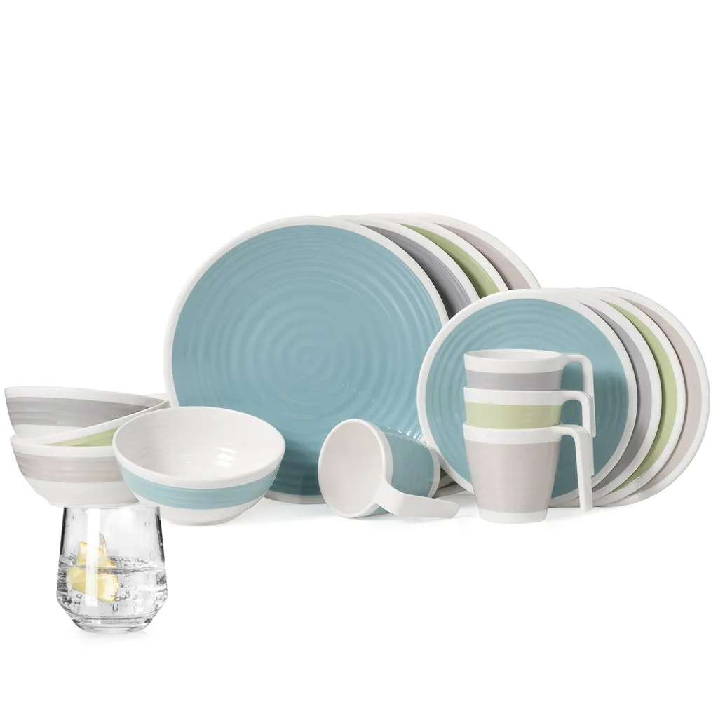 Set Melamin Geschirr Harmonie Design Farbe creme/blau-grau-grün und latte