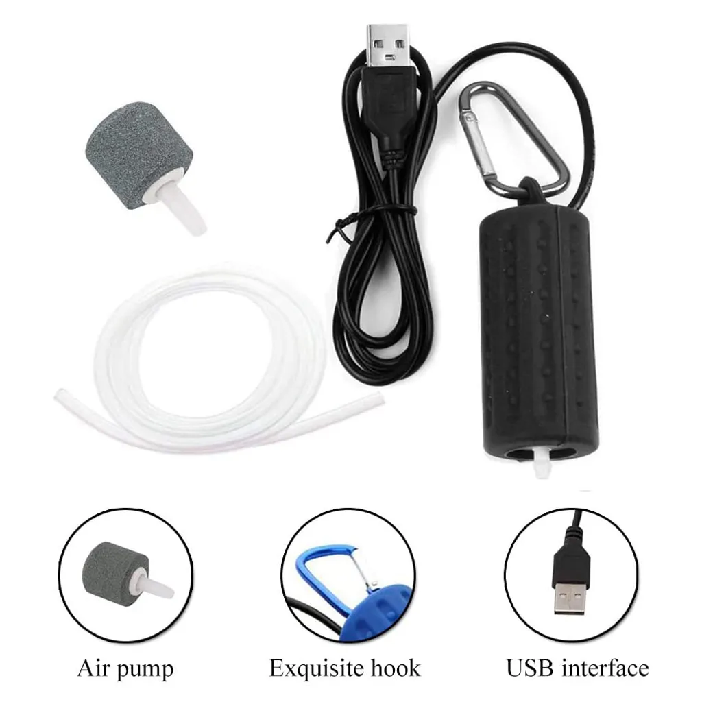 3. 【Kompakt und praktisch】: Unsere USB-Sauerstoffpumpe ist klein, leicht und tragbar mit einer haltbaren Schnalle. Sie können es leicht im Freien zum Angeln mitnehmen.