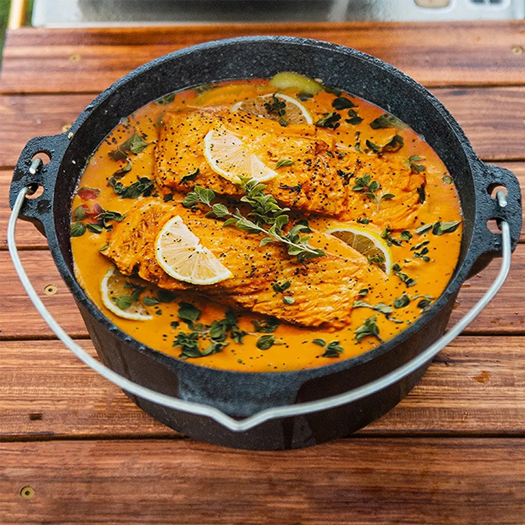 Der Dutch Oven – ein gusseiserner Kochtopf – begeistert durch eine hohe Vielseitigkeit. Bei diesem Modell haben Sie die Wahl zwischen verschiedenen Größen. Von kleinen über mittelgroße bis hin zu großen Kochtöpfen gibt es alles, was das Herz begehrt. Der Deckel verfügt über einen erhöhten Rand und bietet Ihnen damit viel Platz für Glut, Kohle oder Briketts. Das Kochen mit dem Dutch Oven ist ein Genuss: Speisen wie Fleisch werden außergewöhnlich zart und entwickeln ein Aroma zum Verlieben.