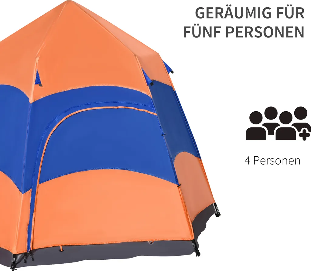 · Geräumiges Campingzelt in Sechseckform für 5–6 Personen