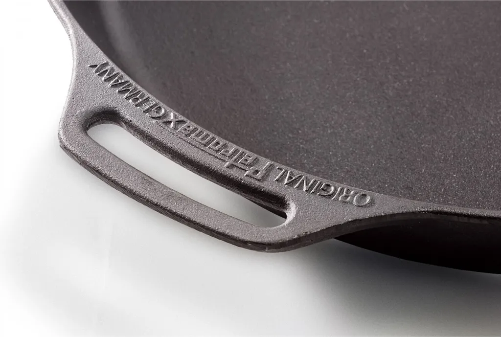 Die Petromax Feuerpfanne fp35 besteht aus Gusseisen. Dieses Material zeichnet sich durch seine besonderen Eigenschaften aus. Es speichert Hitze hervorragend, sodass die Speisen auch nach dem Servieren noch lange heiß bleiben. Das ist besonders wichtig, wenn Sie oder Ihre Gäste später noch eine zweite Portion genießen wollen und Sie das Essen direkt aus der Pfanne servieren möchten. Das Gusseisen der Petromax Feuerpfanne fp35 ist außerdem besonders formstabil und hitzebeständig, sodass Sie keine Sorgen haben müssen, dass die Pfanne am Feuer Schaden nimmt. Sie kann aber nicht nur über dem Grill genutzt werden, ganz im Gegenteil: Die Petromax Feuerpfanne fp35 eignet sich für Herdplatten, Gaskocher, den Backofen und auch offenes Feuer.
