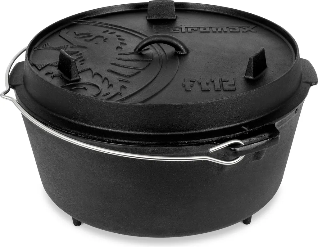 Er ist schwarz und er ist robust! Der Petromax Feuertopf ist ein vollständig aus Gusseisen gefertigter Topf von exzellenter Qualität. Weitläufig auch als Dutch Oven bezeichnet, ist der Petromax Feuertopf ideal für das Kochen im Freien und im heimischen Backofen geeignet. Die exzellente Wärmeleitung und die Speicherung der Wärme über einen langen Zeitraum sowie die extreme Robustheit zeichnen den Topf aus. Der ideale Begleiter für Ihre Camping-, Outdoor- und Freizeitaktivitäten. Mit ihm garen Sie Speisen, wie z. B. Fleisch und Gemüse, sehr schonend im eigenen Saft über offenem Feuer oder im Backofen. Der Deckel des Feuertopfs kann zudem optional als Servierplatte oder Pfanne genutzt werden. Dank der vorbehandelten Oberfläche (seasoned finished) können Sie den robusten Petromax Feuertopf aus Gusseisen sofort einsetzen.