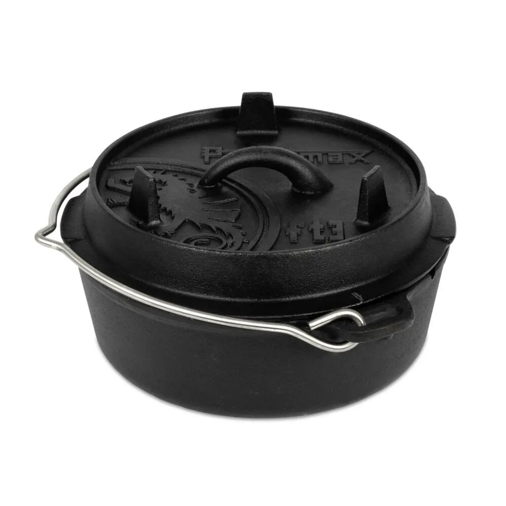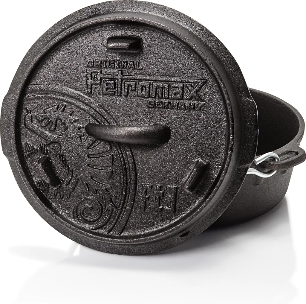 Ein weiteres Highlight ist, dass man den Deckel umgedreht auch als Pfanne verwenden kann. Zusammen mit all diesen raffinierten Details kommt der Feuertopf im klassischen Petromax Design daher: Der Deckel wird von dem eleganten Petromax-Logo geziert, das seit jeher für exzellente Qualität und hochwertige Produkte steht.