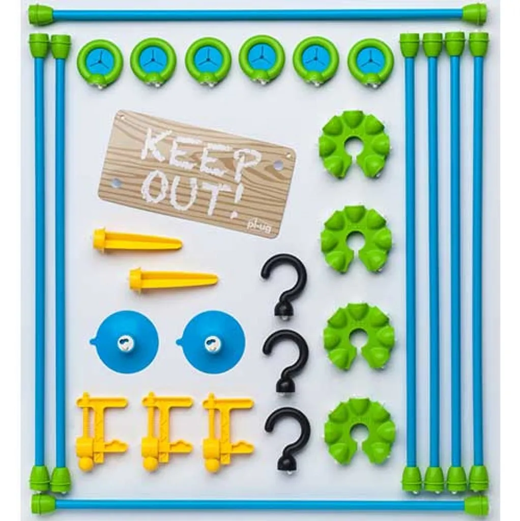 Bauen Sie Ihr eigenes Zelt mit einer Decke, einem Laken oder einem Teppich (nicht im Lieferumfang enthalten).