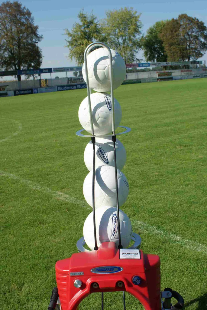 Nach dem Vorbild der größten Vereine rüsten Sie sich mit einer Ballwurfmaschine aus! Inklusive Ballonladegerät, 5 Powapass-Ballons und 2 Fernbedienungen für die Fernsteuerung ⚽