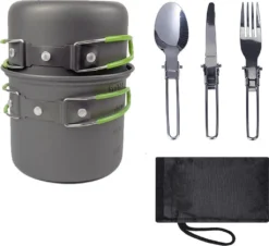 Camping Kochgeschirr Set, Tragbar Rucksackreisen Outdoor Wandern Camping Mini Gaskocher Topf