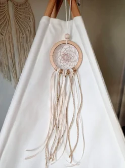 Boho Kinder Spielzelt Wigwam Creme WeiĂź Bodenmatte Pompons 3 Kissen 110x110x150cm Tipi Teepee