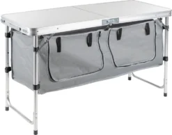 Höhenverstellbarer, Klappbarer Campingtisch Mit Arbeitsflächen Und Stauraum Tisch Camping