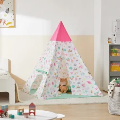 SoBuy OSS03-A02 Tipizelt Spielzelt Zelt Für Kinder Mit 1 Tür Spielhaus Kinderzelt (Weiß/Dreieck)