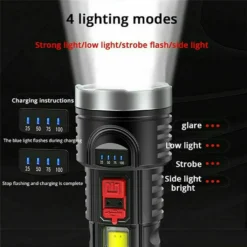 3.Mit 4 Beleuchtungsmodi, starker Licht-Light-Light-Blitz-Flash-Core-Stab heller Seitenlicht.