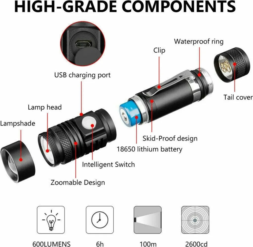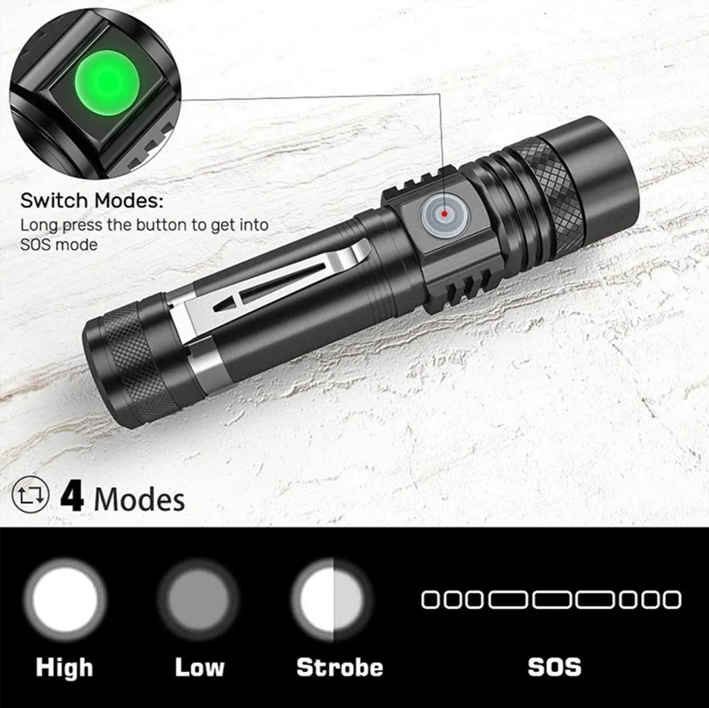 2: Lichtmodus und Zoomfunktion: hohe Helligkeit, mittlere Helligkeit, Blitzhelligkeit. Einstellbarer Fokus, geeignet für kurze oder lange Distanzen