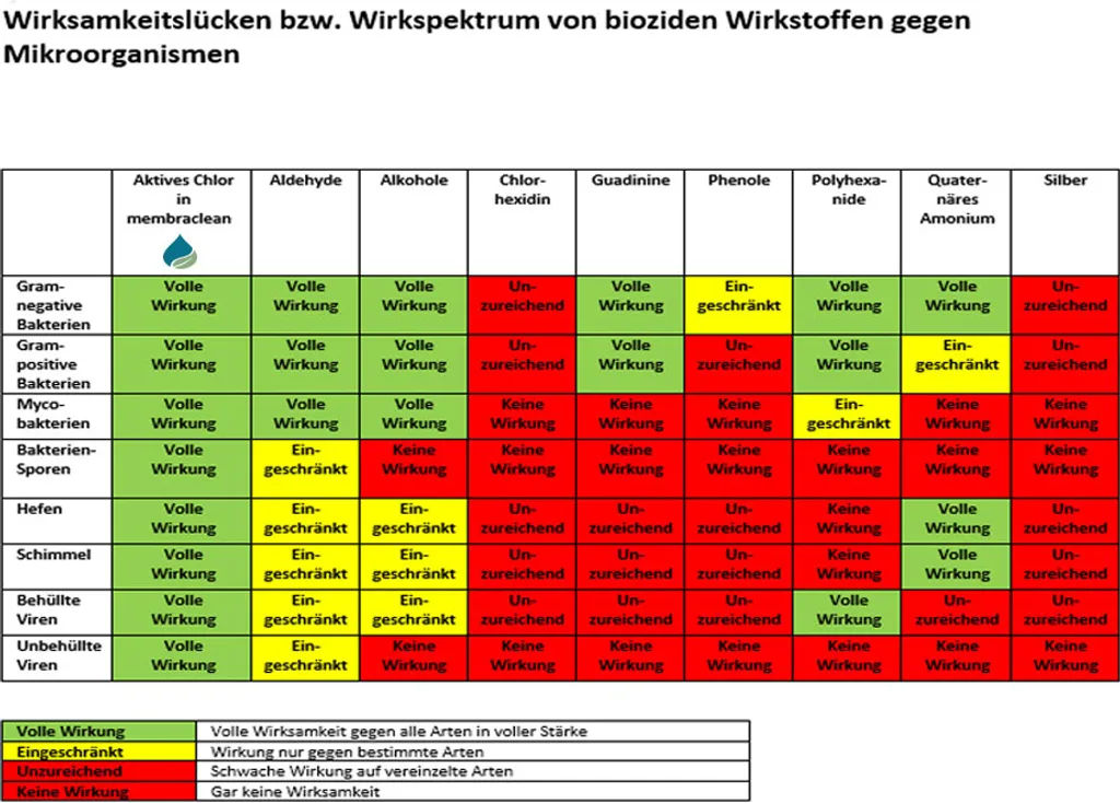 Im Gegensatz zu Silberprodukten hat es keine Lücken im Wirkungsspektrum, ist somit wesentlich wirksamer und materialverträglicher.