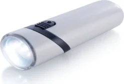 Wiederaufladbare Taschenlampe mit schwenkbarem Kopf und LED-Technologie.