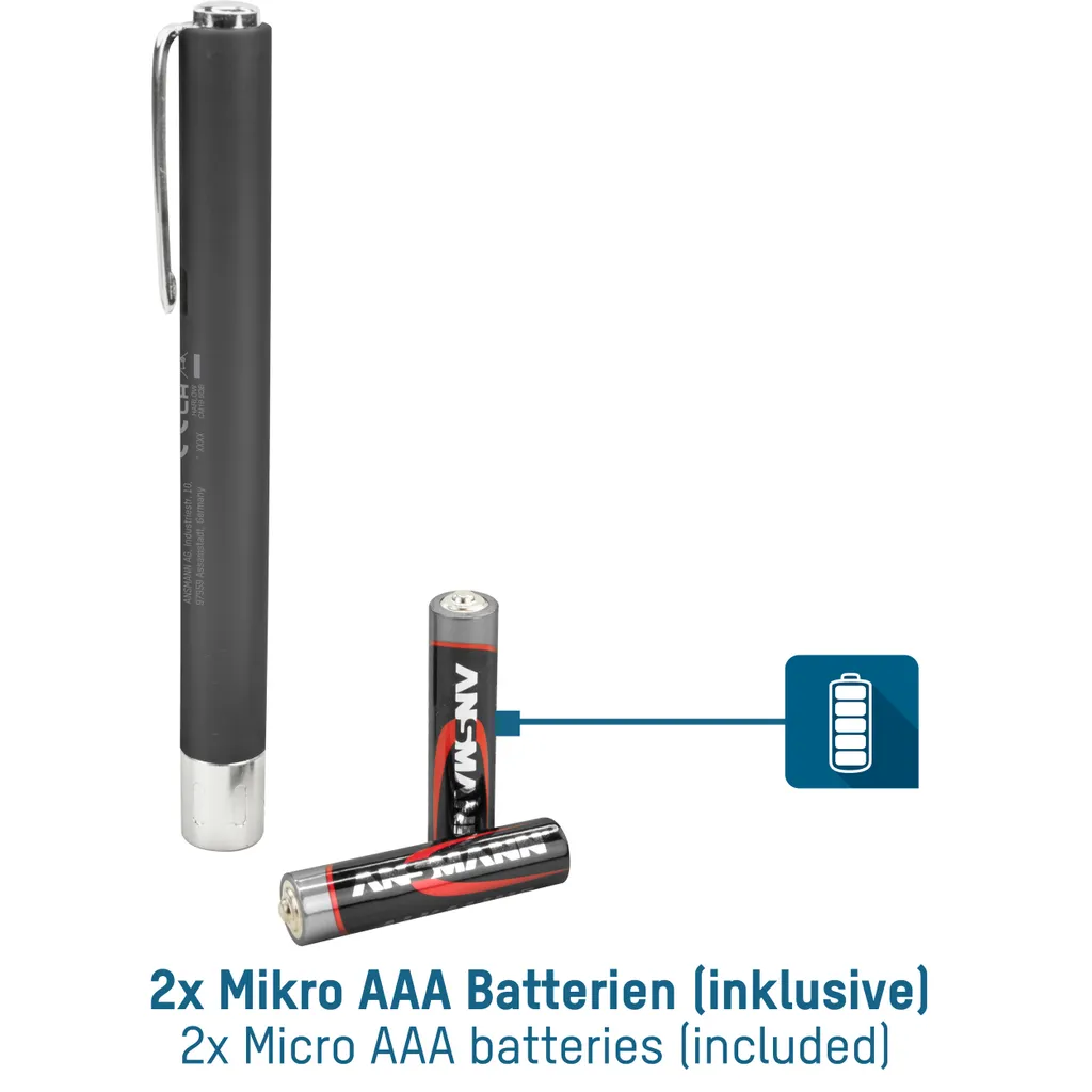 Die Stiftleuchte PLC15B ist eine schlanke, elegante und bedienerfreundliche Leuchte aus Kunststoff mit Clipschalter. Findet überall Platz und ist daher der ideale Begleiter. Die Penlight ist besonders leicht und mit 2 Alkaline Micro AAA Batterien (inklusive) ausgestattet.