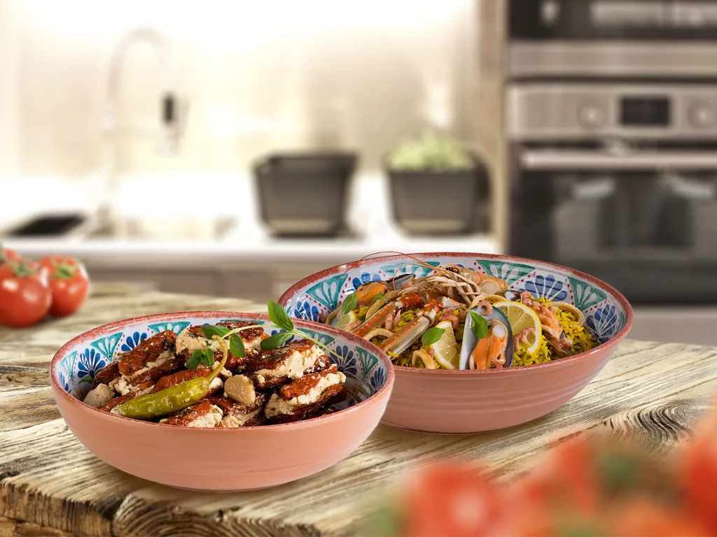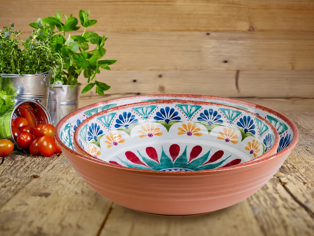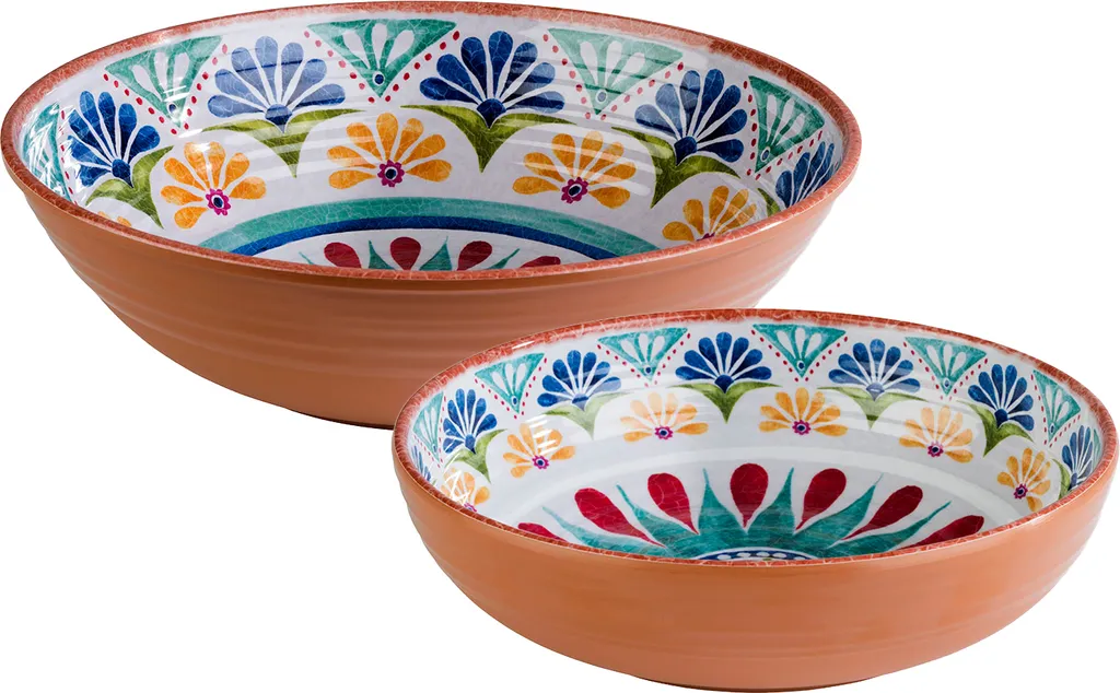Melamin Geschirr 2-er Schüssel Set im mediterranen Design.