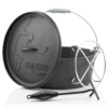 Der Dutch Oven ist ein schwerer, traditioneller, gusseiserner Topf und ein exakt passender Deckel mit dem man überall kochen, braten, schmoren, frittieren, dünsten und backen kann. Der Dutch Oven reguliert dank seiner hohen Masse (Gusseisen) ungleichmäßige Hitze und ermöglicht so ein gleichmäßiges Garen. Einfach glühende Kohlen, Glut oder Grillbriketts auf den Deckel und unter den Topf geben und das Dutch Oven-Erlebnis kann losgehen. Der extra erhöhte Deckelrand und die drei Beine bieten optimale Bedingungen für Kohle und Co.