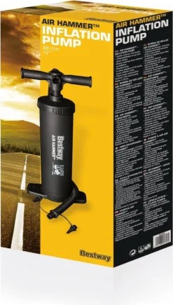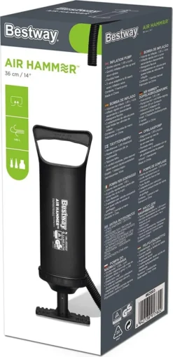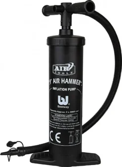 Die 48 cm lange Bestway® Air Hammer™ Doppelhubkolbenpumpe ermöglicht ein einfaches Aufpumpen und Entleeren von Schwimmringen, Luftmatratzen, Schlauchbooten, Spielzeug und vielem mehr. Diese Pumpe wurde für einen maximalen Luftdurchsatz konzipiert und besitzt ein Hubvolumen von 3,5 Liter. Sie liefert sowohl beim Auf- als auch Abwärtsbewegen einen kontinuierlichen Luftstrom, welches ein schnelleres Aufpumpen ermöglicht. Zudem sind drei Universal-Ventiladapter im Lieferumfang enthalten, welche mit nahezu jedem Aufblasventil kompatibel sind.