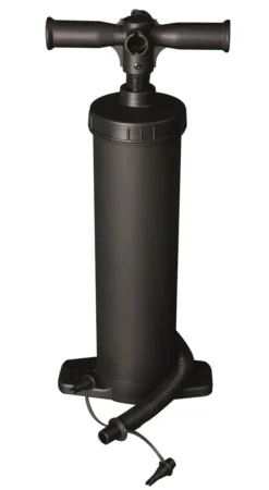 Die Doppelhubpumpe baut bis zu 1.0 bar Druck auf und enthält 3 verschiedene Adapter um den Einsatz an vielen verschiedenen Produkten zu ermöglichen. Mit 2 x 2.000 ccm Pumpvolumen geht ihr nicht so schnell die Luft aus.
