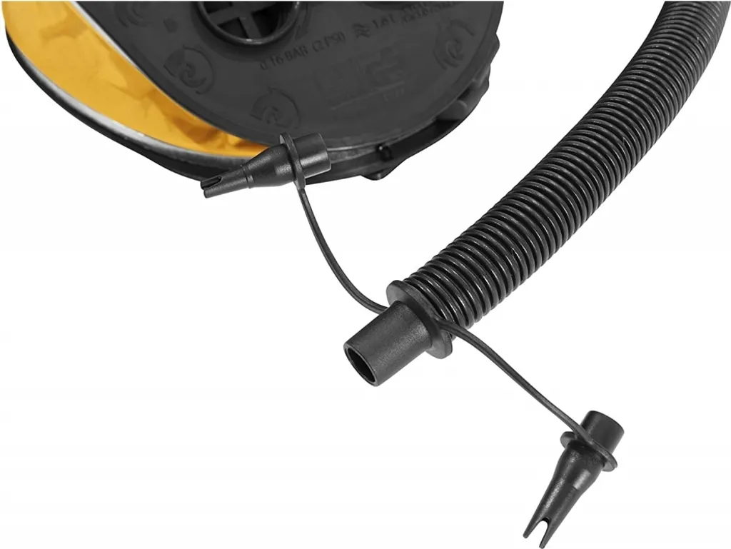 Sport 2000 Wassersport 5000 ccm Blasebalg. Zum Be- und Entlüften geeignet. Flexibler Schlauch. 3 verschiedene Adapter für unterschiedliche Ventile. Effektive Konstruktion. Material: Kunststoff. Farbe: schwarz/gelb. Größe: 28 x 22cm.