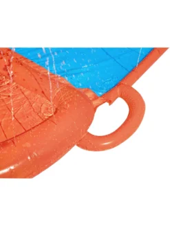 Der integrierte Wassersprinkler sorgt dafür, dass man beim Rutschen nicht ins Stocken kommt und hält die Piste dauerhaft feucht. Dieser muss einfach mit dem Gartenschlauch verbunden werden und schon kann der Spaß losgehen.