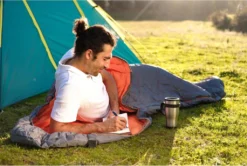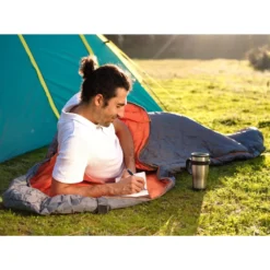 Die Travelsoft-Isolierung eignet sich am besten für feuchte Bedingungen mit einer hervorragenden Atmungsaktivität, die Sie trocken und angenehm hält. Pavillo kann auch vollständig geöffnet werden, da es ringsum einen Reißverschluss hat. Dann funktioniert es hervorragend als Decke. Dies macht das Produkt wirklich vielseitig, egal ob Sie auf dem Campingplatz sind oder nur als zusätzliche Nacht.