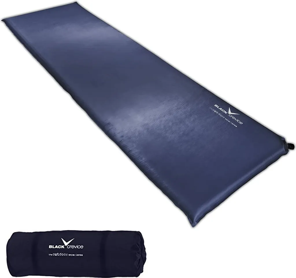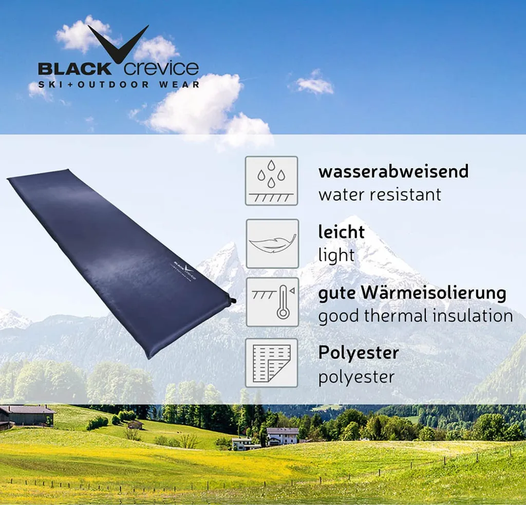 Die selbstaufblasbare Isomatte von Black Crevice ist mit einem offenzelligen Schaumstoff gefüllt. Sobald die Matte ausgerollt und das Ventil geöffnet ist, saugt die Matte Luft an. Bis alle Poren gefüllt sind, dauert es in der Regel zwischen 10 und 20 Minuten. Das Ventil kann nun verschlossen und die selbstaufblasbare Isomatte als Schlafunterlage verwendet werden.