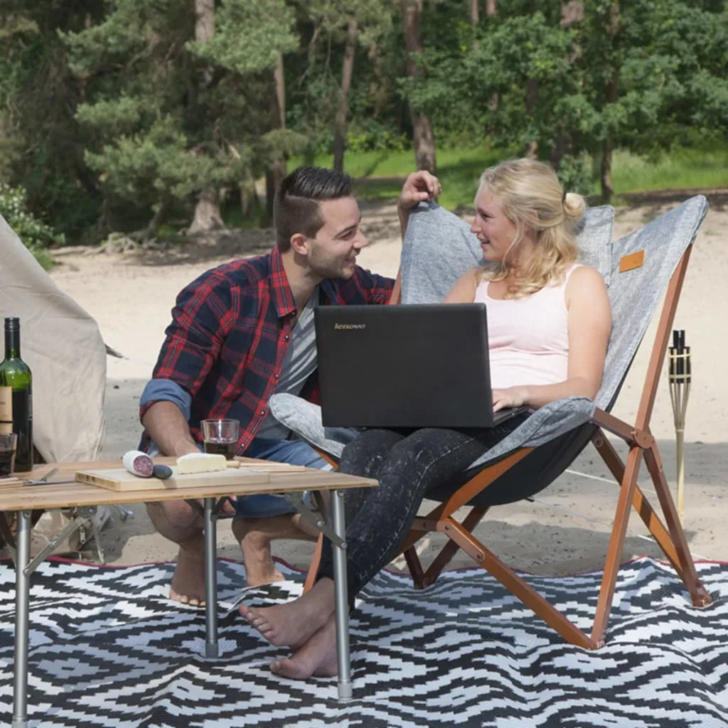 Der Bloomsbury Relaxstuhl von Bo-Camp ist ein sehr r und bequemer Loungesessel, der ideal für Campingplatz, Wohnzimmer, Balkon oder Garten geeignet ist. Dieser klappbare Relaxstuhl besitzt ein stilvolles und robustes Holzgestell. Der Sitz besteht aus Oxford-Polyester in Leinenoptik, zudem ist er bequem gepolstert. Dieser Relaxstuhl ist äußerst bequem mit der Kombination aus einem extra breiten, tiefen Sitz, gepolstertem Stoff und dem Kissen. Das faltbare Gestell erleichtert das Tragen des Stuhls in der mitgelieferten Tragetasche.