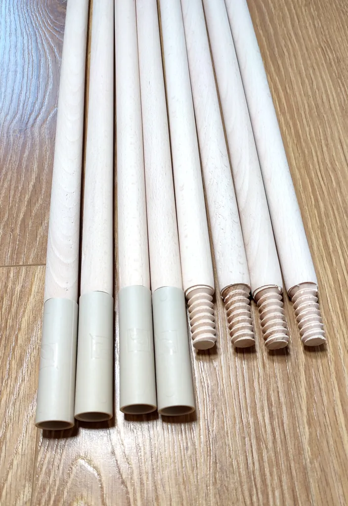 Die Stangen sind aus Buchenholz gefertigt und in speziellen Tunneln im Stoff versteckt. Die Stangen bestehen aus zwei Teilen, die in der Mitte mit einem Aluminiumverbinder kombiniert werden. Der obere Teil der Stangen wird mit einer Schnur festgebunden.