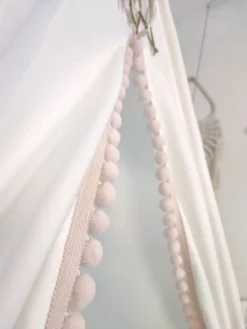 Das Boho Kinder Spielzelt ist aus hochwertiger Baumwolle, die sich weich anfühlt und langlebig ist. Der Tipi-Bezug kann abgenommen und in der Waschmaschine bei 30 Grad gewaschen werden.