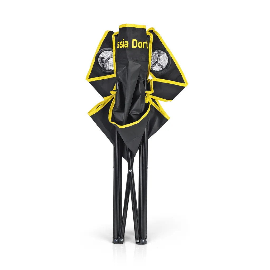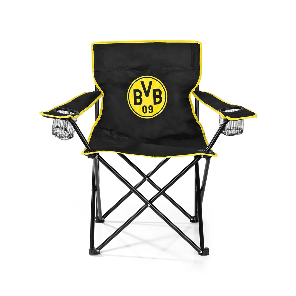 Ob beim Angeln, auf dem Campingplatz, am Strand oder auf Festivals: Der BVB Campingstuhl ist immer dabei! Einfach auseinanderfalten, aufstellen und hinsetzen! Neben bequemen Armlehnen bietet die praktische Sitzgelegenheit sogar noch zwei Getränkehalter für die kühle Erfrischung an heißen Tagen.